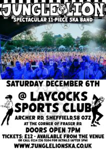 We’re back at Laycocks Sports Club on Saturday December 6th, we’ve been here before a couple of times and always had a great night. A cheap bar, and plenty of space for dancing – a perfect combo for a Jungle Lion gig 🙂
